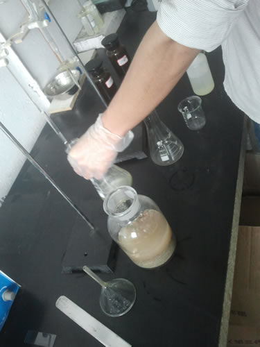 (1)稱取試樣500g,裝入帶塞磨口瓶中,用容量瓶取500ml蒸餾水,注入磨口瓶內,加上塞子,搖動一次,放置2h,然後每隔5min搖動一次,共搖動3次,使氯鹽充分溶解。將磨口瓶上部已澄清的溶液過濾,然後用移液管吸取50ml濾液,注入三角瓶中,再加入濃度為5%鉻酸鉀指示劑1ml,用0.01mol/L硝酸銀標準溶液滴定至呈現磚紅色為終點,記錄消耗的硝酸銀標準溶液的毫升數(V1)。