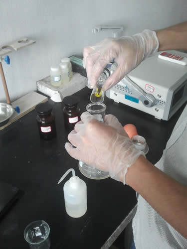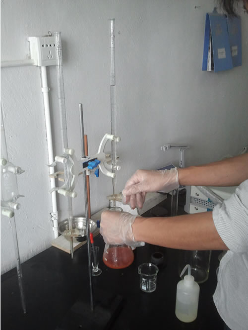(2)空白試驗,用移液管準確吸取50ml蒸餾水到三角瓶內,加入5%鉻酸鉀指示劑1ml,並用0.01mol/L的硝酸銀標準溶液滴定至呈現磚紅色為終點,記錄消耗的硝酸銀標準溶液的毫升數(V2)。